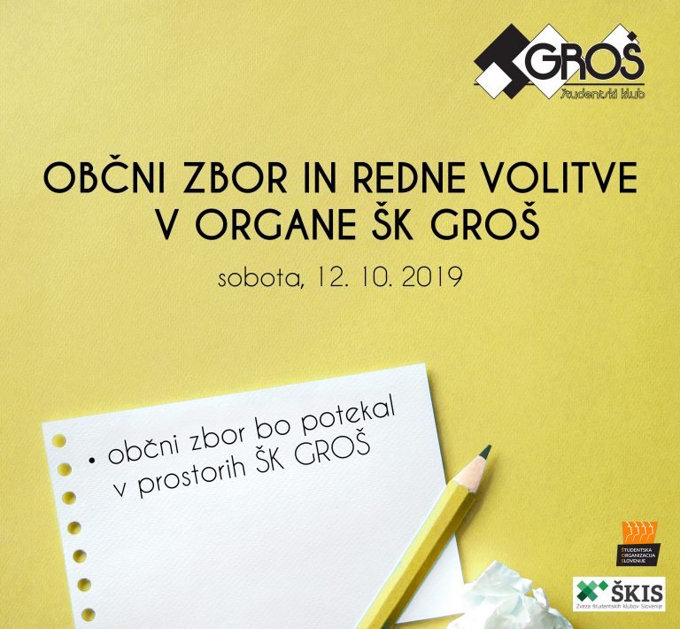 [SPREMEMBA] Razpis rednega občnega zbora in izrednih volitev Študentskega kluba Groš za leto 2019/2020
